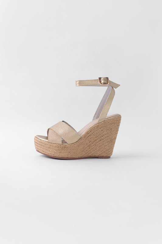 Plataforma forrada en fibra de yute 100% natural.Capellada: cueroInterior: cueroAltura total: 12 cmPlataforma: 4 cm Medidas...